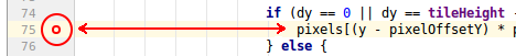 Давайте скопируем индекс обращения из кода (y * h + x) и добавим явную проверку в условный breakpoint: